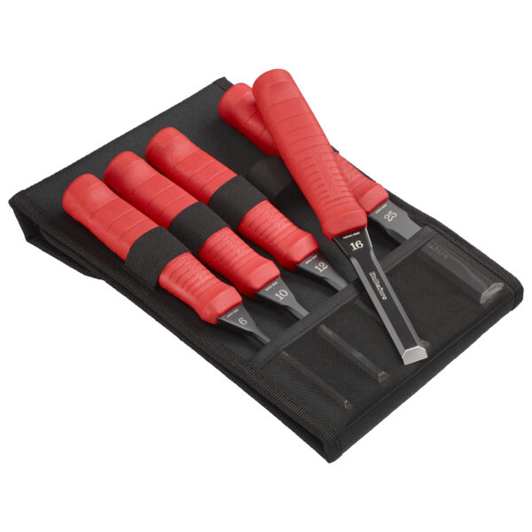 Hultafors Beitelset EDC bestaat uit vijf beitels in verschillende maten gebundeld in een handige etui. Deze beitels zijn geschikt voor dagelijks gebruik en veelvoorkomende werkzaamheden zoals (hout)bewerking, delen losmaken en wrikken. Het perfect geslepen lemmet van Japans staal is scherp en duurzaam en heeft een speciaal handvat dat krachtinge hamerslagen moeiteloos weerstaat.