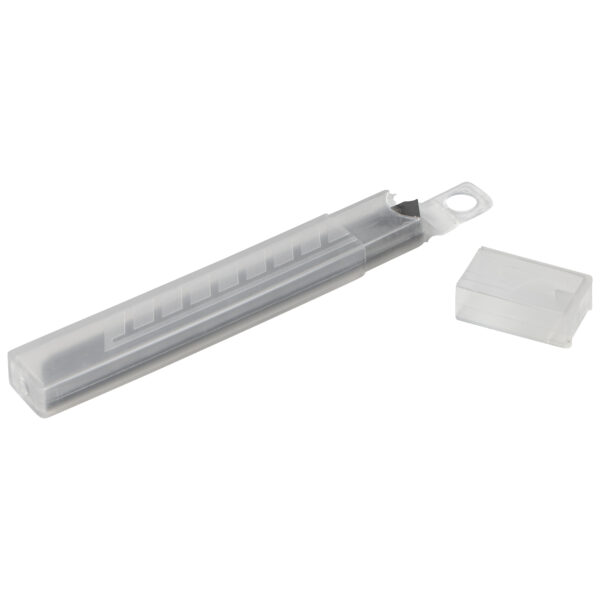- Het 9 mm-mes wordt geleverd in een verpakking van 10. 18/25 mm messen worden geleverd in 4 dispensers met elk 3 reservemessen