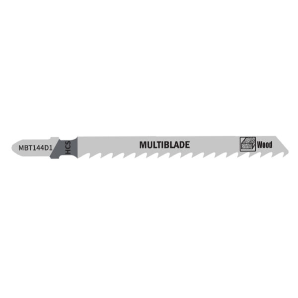 Multiblade decoupeerzaagblad MBT144D1 beschikt over een extra grove vertanding waardoor deze extra snel zaagt en geschikt is voor het zagen in hard en standaard hout. Dit 6 TPI decoupeerzaagblad heeft een lengte van 100 mm en is verpakt per 3 stuks.