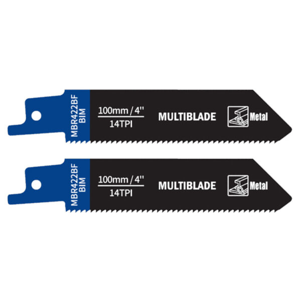 Multiblade reciprozaagblad MBR422BF is geschikt voor het zagen van metaal en heeft een lengte van 100 mm. Het zaagblad is verpakt per 2 stuks en heeft 14 tanden per inch (TPI).