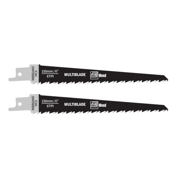 Multiblade reciprozaagblad MBR644D is geschikt voor het zagen van hout en heeft een lengte van 150 mm. Het zaagblad is verpakt per 2 stuks en heeft 6 tanden per inch (TPI).