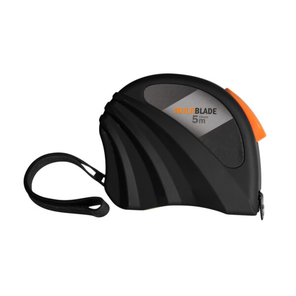 Multiblade rolbandmaat MBC38 is voorzien van een magneet zodat deze blijft hangen aan voorwerpen van metaal. De rolmaat is 5 meter lang.