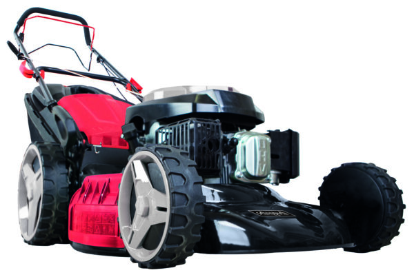 Benzine grasmaaier MS196-53B van Scheppach met stalen bumper. De MS196-53B is een zelf aangedreven grasmaaier. Dat betekent dat u de grasmaaier niet vooruit hoeft te duwen maar dat deze automatisch vooruit gaat.