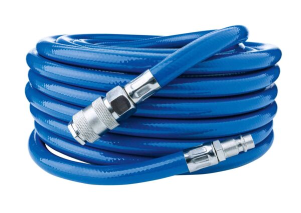 Robuuste persluchtslang van Scheppach met lengte 18m. De slang heeft een binnendiamater van 8mm en snelkoppeling met nippel. De slang kan heeft een maximale werkdruk van 20 bar.