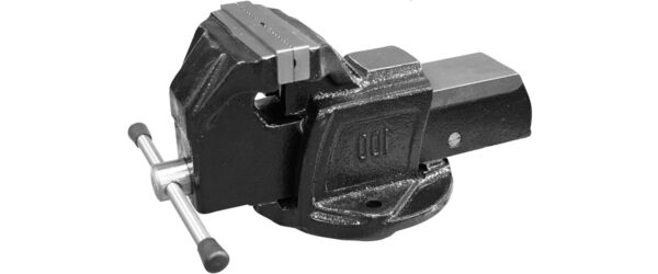 Deze Skandia bankschroef 100 mm, ook wel parallelbankschroef genoemd, is een gereedschap waar een werkstuk in vastgezet kan worden waardoor er makkelijker gewerkt kan worden omdat deze werkstukken dan niet vastgehouden hoeven te worden. Op deze manier kunnen vrijer bewerkingen verricht worden, zoals zagen, boren, vijlen, schuren, lassen, slijpen enz. Deze bankschroef is vervaardigd uit hoogwaardig gietijzer, zwart afgelakt en heeft verwisselbare gehard stalen bekken en een klein aambeeld. De bankschroef kan werkstukken aan met een maximale dikte van 135 mm.