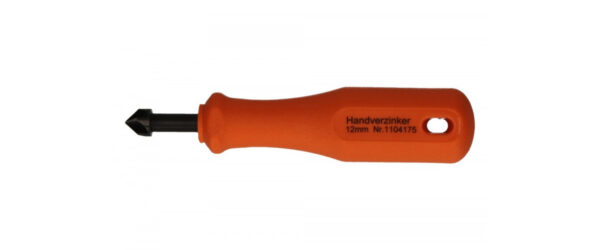 Skandia handverzinkboor, ook wel handverzinker of handsouvreinboor genoemd. Bijzonder geschikt om na het boren van een gat de kop van een schroef te verzinken, om zodoende de schroefkop vlak en glad te krijgen met het materiaal. Uitvoering; te gebruiken voor hout en zachte metalen, voor handgebruik, met zwart kunststof handvat. Met een ophanggat.