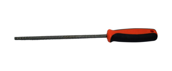 Skandia ronde rasp, ook wel houtrasp genoemd. Iets taps toelopend. Deze wordt gebruikt voor het bewerken van hout, plaatmateriaal, kunststof en andere zachte materialen. Deze rasp is dubbel gekapt, waarbij er snijkanten in twee richtingen zijn aangebracht waardoor een groot aantal scherpe tandjes ontstaat. Aan de andere kant van de rasp is deze extra grof getand(basterd). Ter voorkoming van roest wordt deze vijl inclusief gratis beschermende houder geleverd.