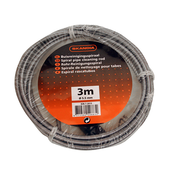 Skandia ontstoppingsveer, ook wel afvoerreinigingsspiraal, rioolreinigingsveer of rioolveer genoemd. Geschikt voor eenvoudige rioolpijpreiniging van bijvoorbeeld afvoerleidingen van wastafel en douche. Met freeskop en draaihandgreep voor huishoudelijk en vakkundig gebruik.