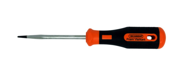 Deze vierkante Skandia priem, ook wel els genoemd, is vervaardigd van chroom vanadium staal, met een kunststof 2-componenten antislip handvat met ophanggat. De kling is extra nagehard met scherpe zwarte punt. Een priem wordt onder andere gebruikt om stikgaatjes te prikken bij leerbewerking, om gaatjes voor te prikken bij houtbewerking waardoor makkelijker een gat geboord kan worden met een boor en bij hout- en metaalbewerking om heel nauwkeurig te kunnen aftekenen (inkrassen).