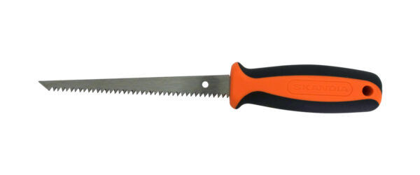 Skandia steek- schrobzaag, ook wel gipsblokkenzaag of gipsplatenzaag genoemd, met agressieve vertanding. Geschikt voor met name gipsblokken en gipsplaten, maar ook voor grof hout werk. Het zaag heeft een smal zaagblad, uitlopend op een punt. Door spitse punt kan men makelijk door een gipsplaat heen steken, waarna men bijvoorbeeld eenvoudig een stopcontactgat uit kan zagen. Voorzien van comfortabele twee componenten handvat. Zaagbladlengte 150 mm. Totale lengte 270 mm. Aantal hoge tanden per inch 8 stuks, ook wel 8 TPI genoemd. Tweezijdig geslepen.