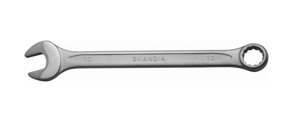 Deze Skandia steekringsleutel is vervaardigd uit chroom vanadium staal, mat verchroomd, met geslepen en dunne gepolijste bek. De sleutelkop staat onder een hoek van 15? voor een optimale toegankelijkheid. Door het open einde van de steeksleutel kan ze eenvoudig over een moer of bout heen gestoken worden. De twaalfkantige ring staat 15? gebogen om de knokkels vrij te houden en biedt de mogelijkheid korte slagen (30?) te maken op plekken waar weinig bewegingsruimte is.