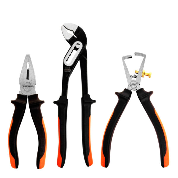 Deze 3-delige Skandia tangenset bestaat uit een combinatietang, striptang en een waterpomptang. Deze set bestaat uit de meest gebruikte tangen voor het klussen in en om het huis.