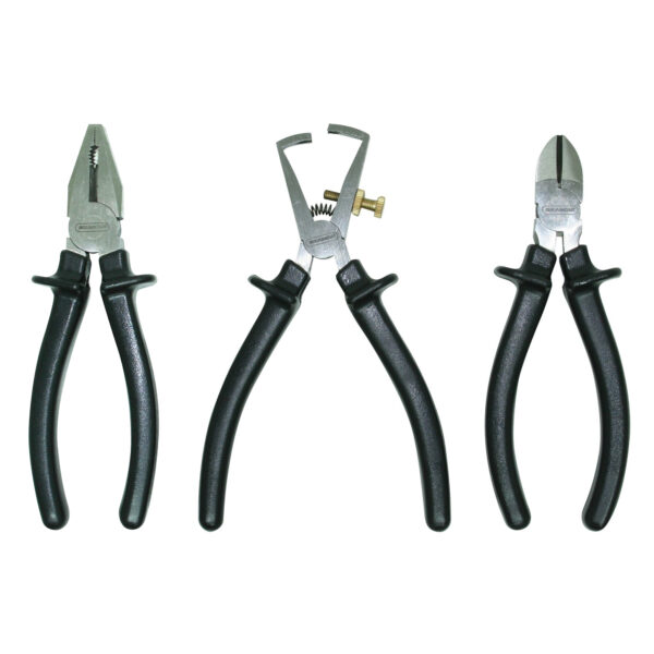 Deze Skandia tangenset bestaat uit de 3 meest gebruikte tangen bij klusjes in- en om het huis, auto, boot of caravan: een platbektang, een striptang en een zijsnijtang. Deze 160 millimeter lange tangen zijn voorzien van kunststof handgrepen met beschermnokken, voor extra comfort en veiligheid tijdens het werken.