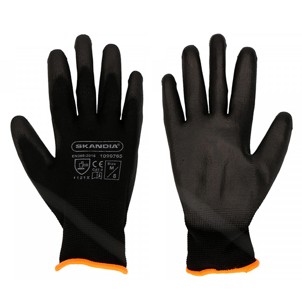 Skandia werkhandschoen voorzien van een PU-coating op de handpalm en vingertoppen. Deze handschoen heeft een hoog draagcomfort en maximale vingergevoeligheid. Comfortabel en voldoende ademend. De gebreide manchet zorgt voor een goede pasvorm. Heeft een goede scheurweerstand. Verkrijgbaar in de maten 8 (M), 9 (L) en 10 (XL).
