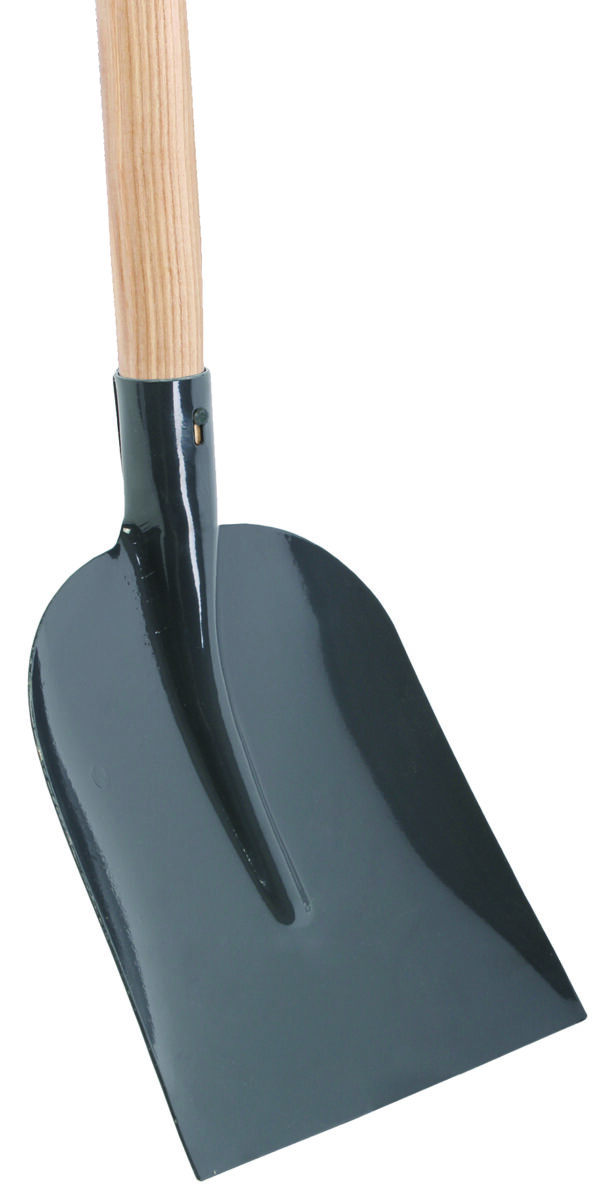 Betonschop 0 met rechte onderzijde voorzien van essen houten steel met handvat. Geschikt voor het verplaatsen van beton, cement en zand maar ook voor het leegscheppen van aanhangwagen of kruiwagen.