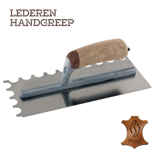 Super Prof Pure lijmspaan halfrond getand voor het verlijmen van tegels. Gehard en speciaal gepolijst RVS blad. Sterke en lichtgewicht aluminium ang.