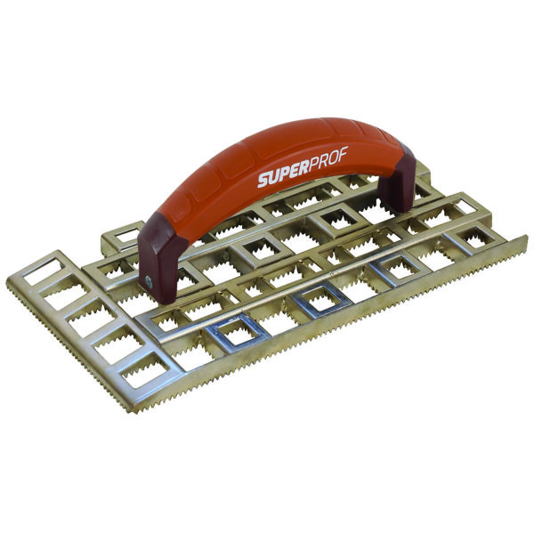 Rabatschaaf aluminium met getante RVS messen en soft greep voor het opruwen van pleisterwerk.