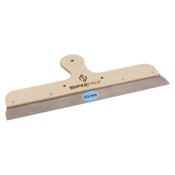 Spackmes met houten greep en stalen blad voor het afmessen van, met name, cement gebonden pleisters.