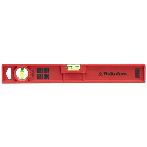 Hultafors Waterpas GDS is een stootvaste waterpas van rood polystyreen kunststof dat bestand is tegen temperaturen tussen –15°C en +60°C. De breukvaste blokvormige libellen zijn zeer transparant en duurzaam. De horizontale libel heeft een vergrootglas en lichtreflector. Cement is zeer eenvoudig van deze waterpas te verwijderen.